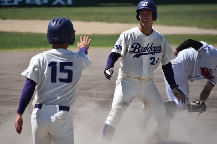 日頃より佛教大学軟式野球部の応援誠にありがとうございます。今回2季連続で全国大会に出場でき、大変嬉しく思います。夏の全国大会が終わり新チームとして多くの頼れる3回生が引退され、チームとしての不安と、新主将としてチームをまとめて行けるか等不安が多い中ではありましたが、多くのチームメイトの支えにより、全国制覇という目標に1歩近づく事が出来ました。まだ目標に向け、1歩目を踏み出したばかりですのでこれから更に成長して行きたいと考えております。これからも佛教大学軟式野球部を応援の程よろしくお願いいたします。