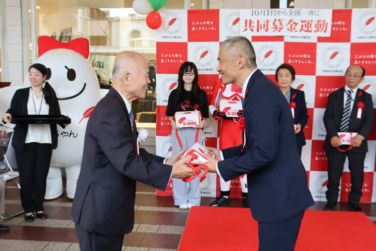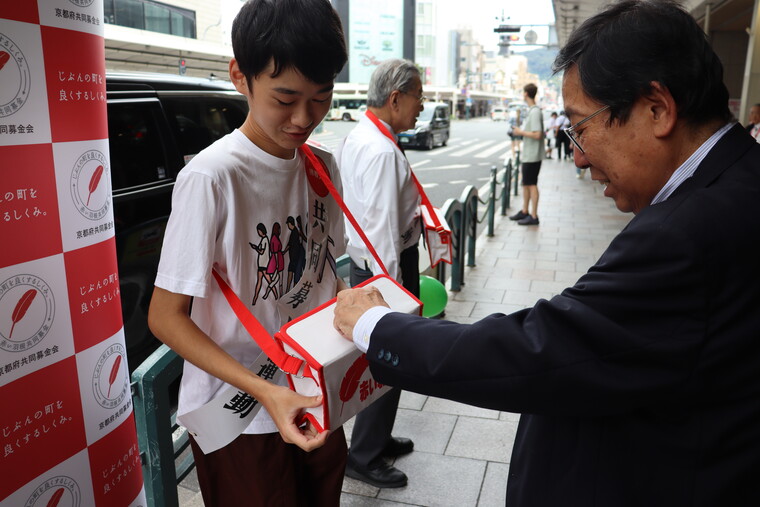 10月1日(水曜)に、令和7年度「共同募金運動開始式典」と街頭募金活動が四条河原町で執り行われ、「赤い羽根共同募金運動」が全国一斉にスタートしました。式典には、髙木健志社会連携センター長が参加し、街頭募金活動には本学学生1名が協力しました。
