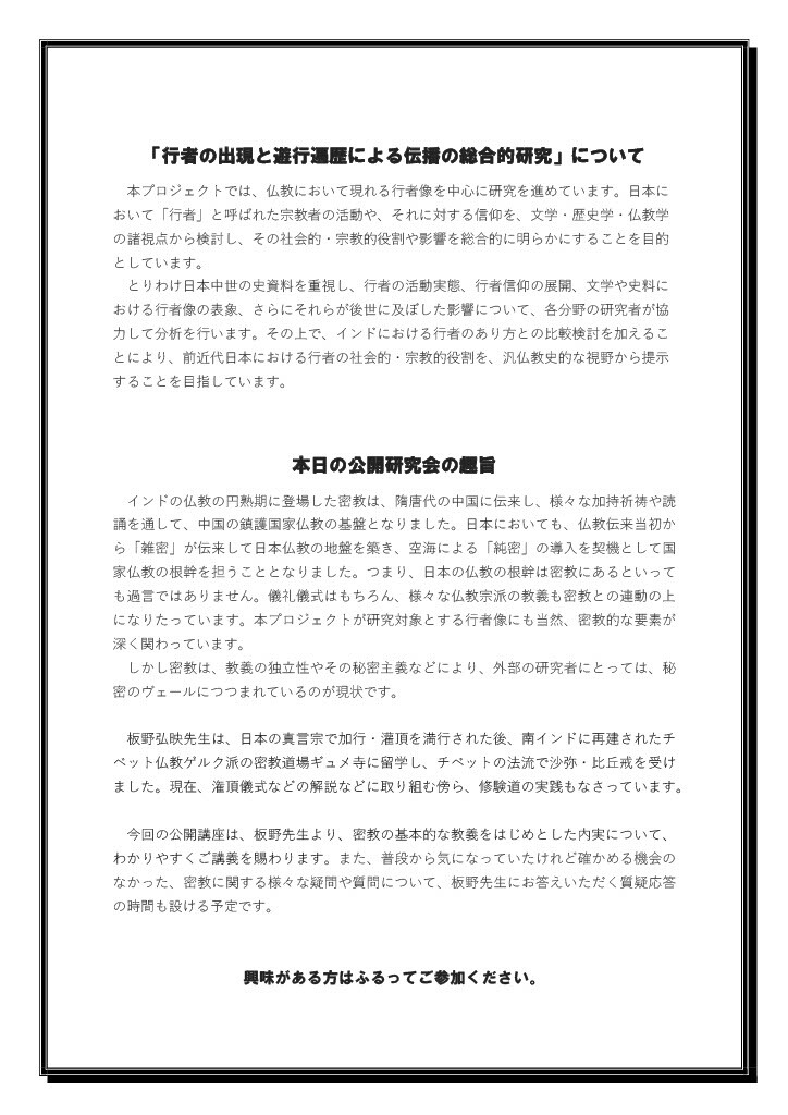 テーマ:「インド・チベット・日本における行者像と現状」