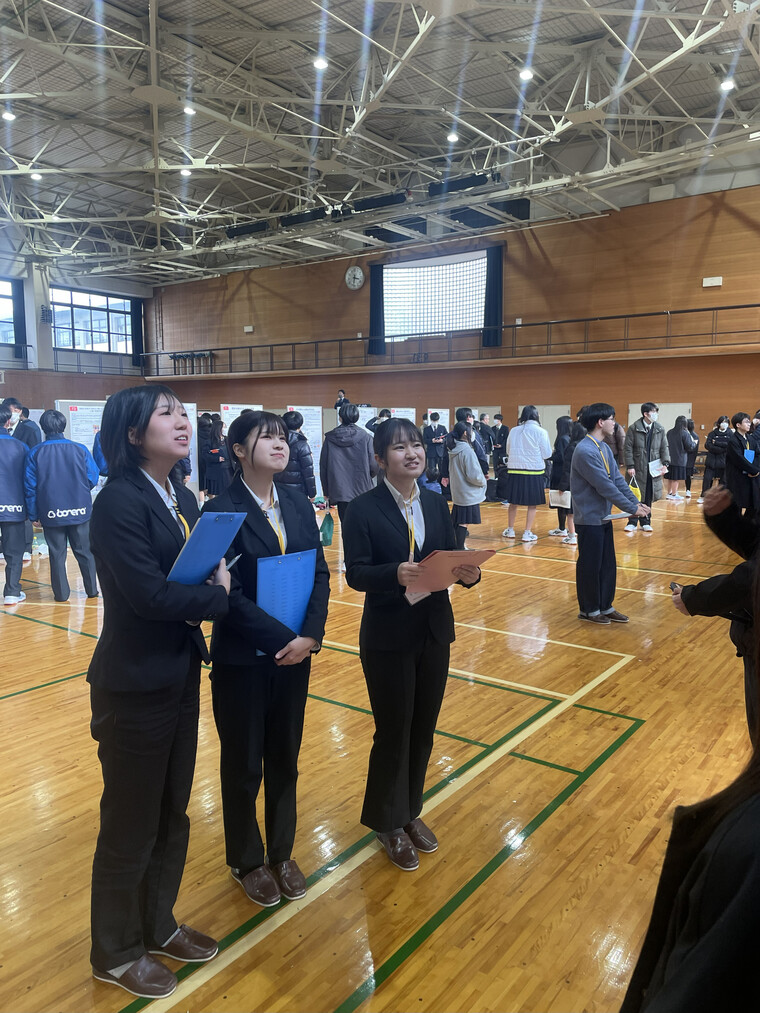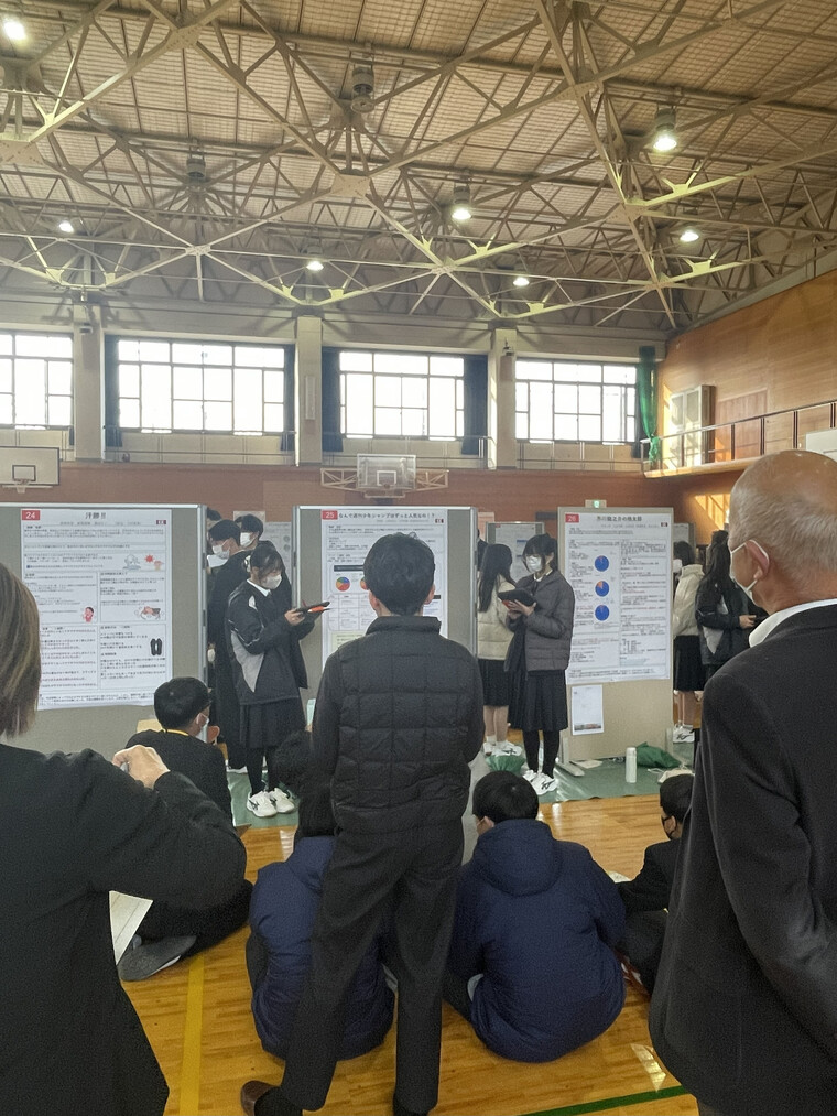同校では生徒の主体的な問いづくりによる探究活動を実施され、1年間グループで研究された内容を発表する場として、本学の教員・学生が講評・意見交換を行わせていただきました。