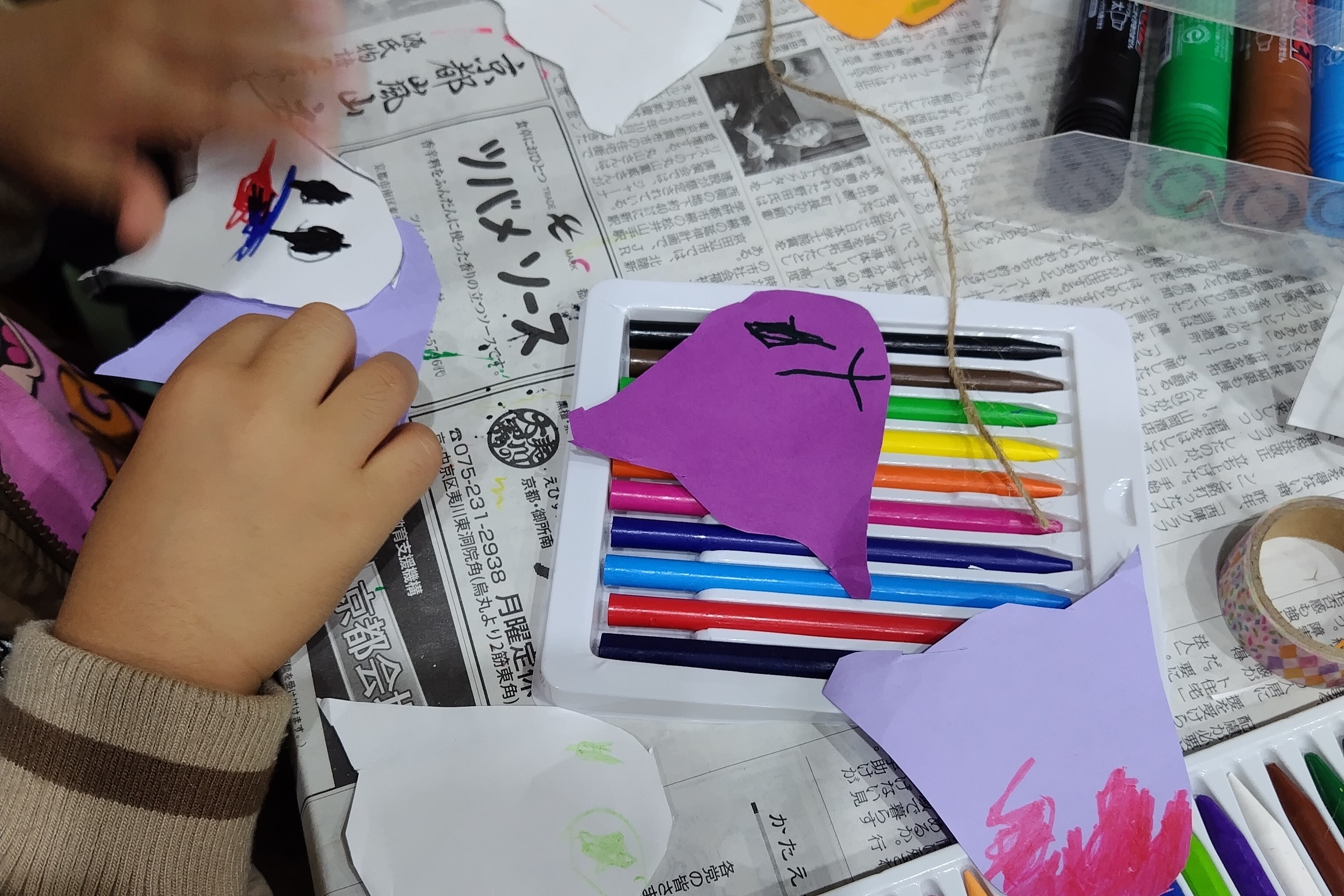 今年度「学生企画まちづくり支援制度」の採択団体である「NijoT」は、大人から子どもまで楽しめるクラフト体験として「つかまりおばけのガーランド」を実施しました。