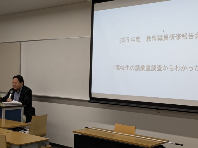 報告会では、「高校生の語彙量調査からわかったこと」と題し報告が行われました。